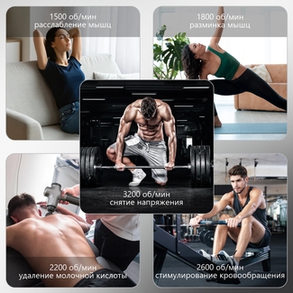 5 МИНУТ массажа с использованием нашего массажного пистолета соответствуют результатам 30 минутного массажа выполненного опытным массажистом.