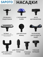 В комплект насадок перкуссионного массажера SAPOTO HEAT+ICE входят 10  НАСАДОК, которые делают целевой массаж более эффективным.
