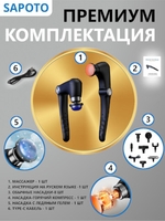 Качество насадок. SAPOTO использует насадки для различных частей тела и мышечных групп, сделанные из качественного пластика, что удлиняет их срок службы. Некоторые насадки сделаны из силикона, что улучшает комфорт  при работе с ними.