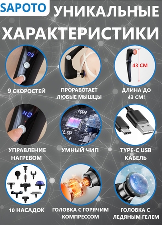 Перкуссионный массажер SAPOTO HEAT+ICE создан для массажа всех групп мышц.